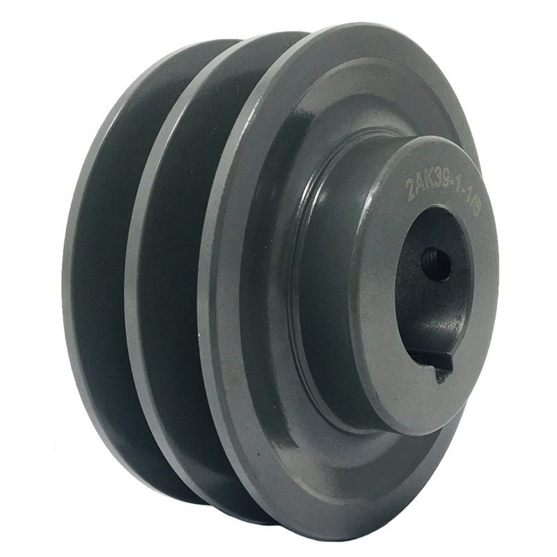 Polea de hierro fundición con doble canal tipo A para transmisión de potencia por bandas trapezoidales. Su diseño robusto permite una operación confiable en maquinaria industrial y comercial. Ideal para aplicaciones que requieren dos bandas simultáneas para mayor tracción o carga.