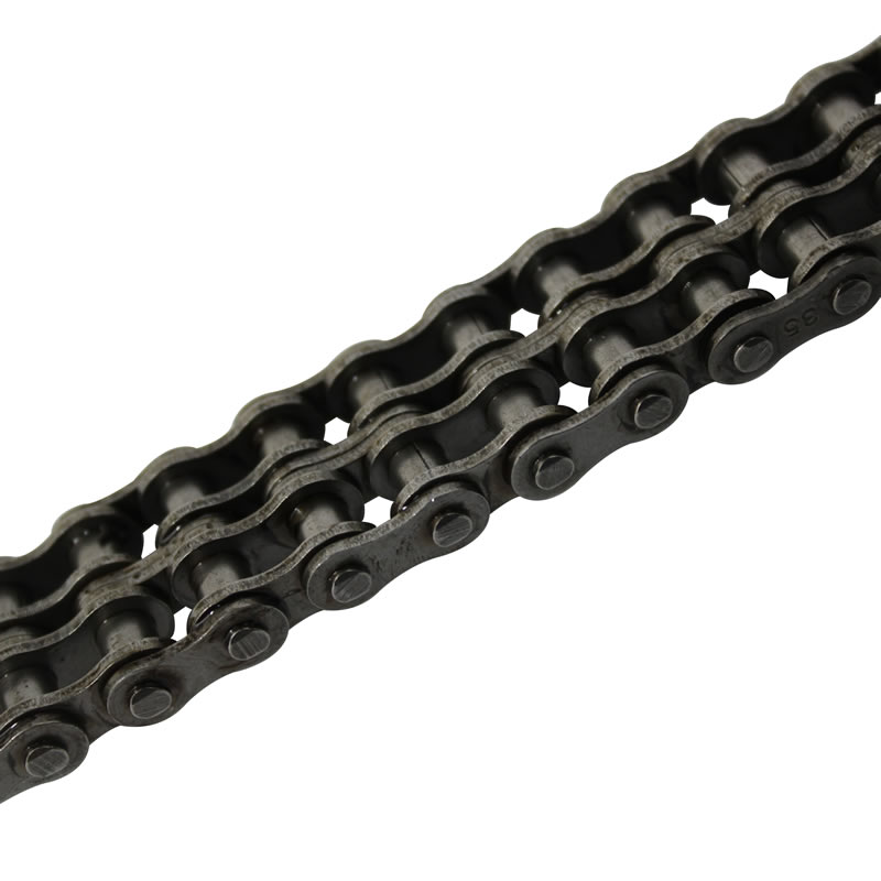 La cadena industrial ANSI doble #40 con pasador remachado (riveted) está diseñada para aplicaciones de transmisión y transporte que requieren mayor capacidad de carga sin sacrificar compacidad. Ideal para equipos que operan en entornos industriales no corrosivos.
