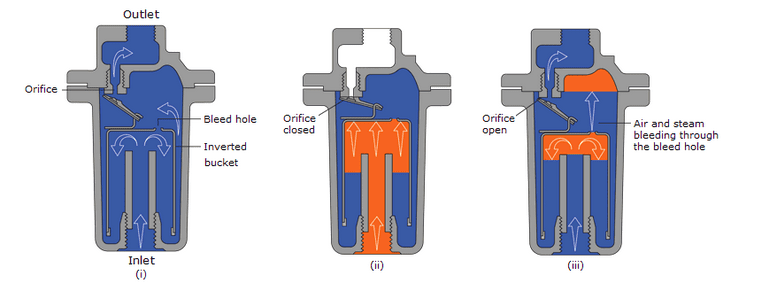 El principio de operación de la trampa de cubeta invertida es sencillo, pero muy efectivo. El proceso se basa en el comportamiento de la cubeta invertida dentro de la trampa y su interacción con el condensado y el vapor.